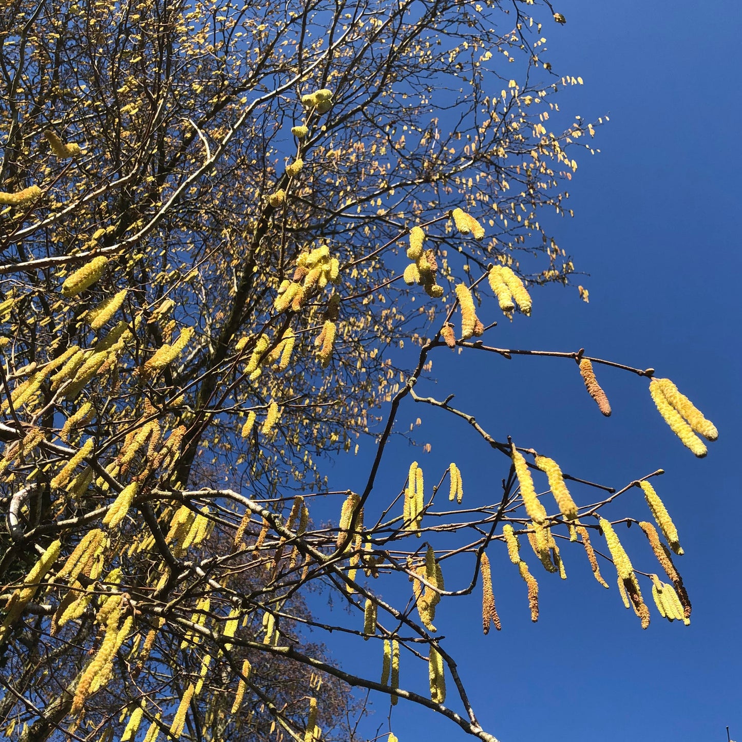 Corylus avellana, Hazel: Attractive catkins in spring, and nuts in autumn of course.